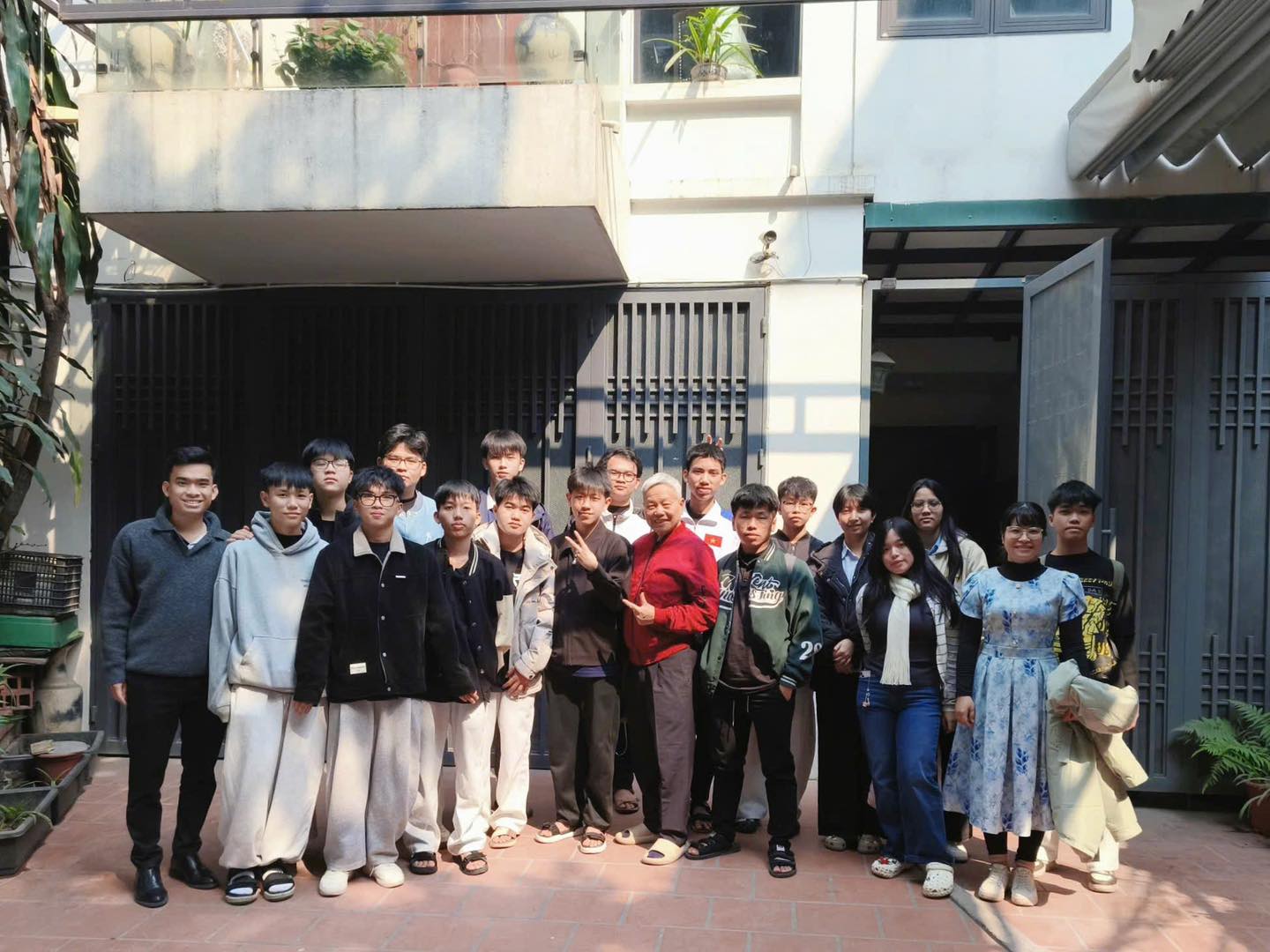 Hình 4: Thầy/Cô, các bạn học sinh CLB Robotics đến thăm và trò chuyện cùng bác Tiến sĩ Nguyễn Chí Công