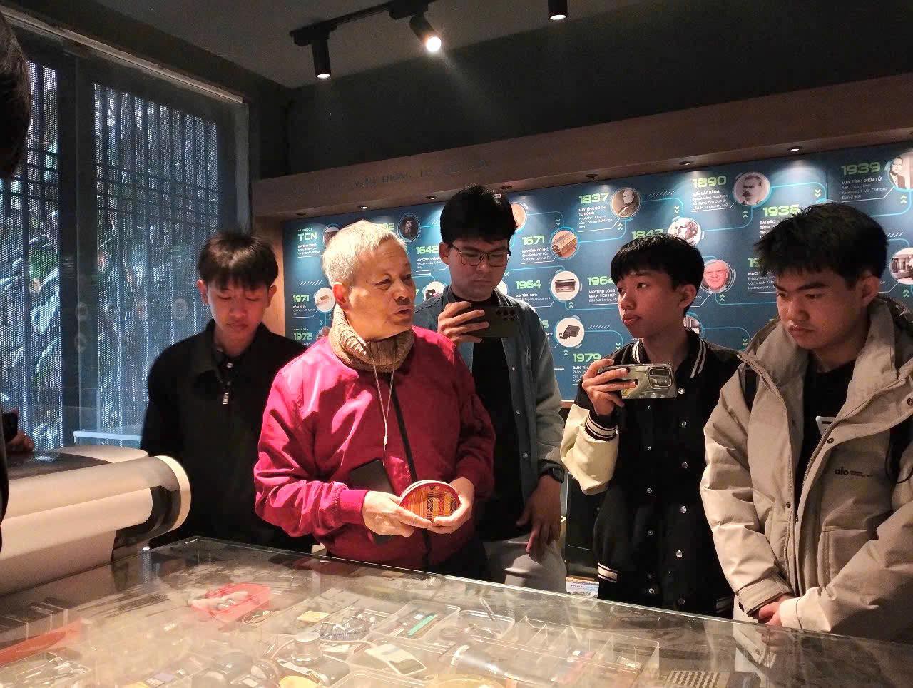 Hình 3: Tiến sĩ Nguyễn Chí Công - trò chuyện cùng các bạn học sinh Chi Lăng - Sao Việt tại Bảo tàng Công nghệ thông tin