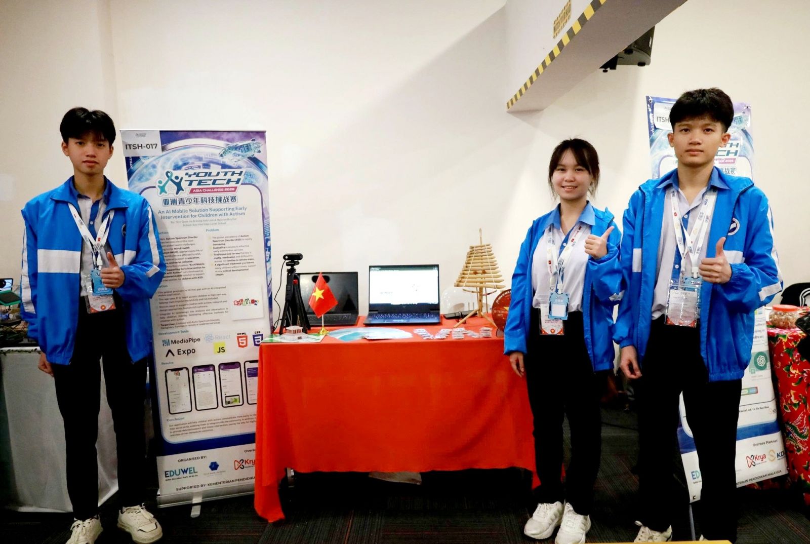 Hình 3: Các bạn học sinh đến từ dự án “An AI Mobile Solution Supporting Early Intervention for Children with Autism – Giải pháp AI di động hỗ trợ can thiệp sớm cho trẻ tự kỷ”